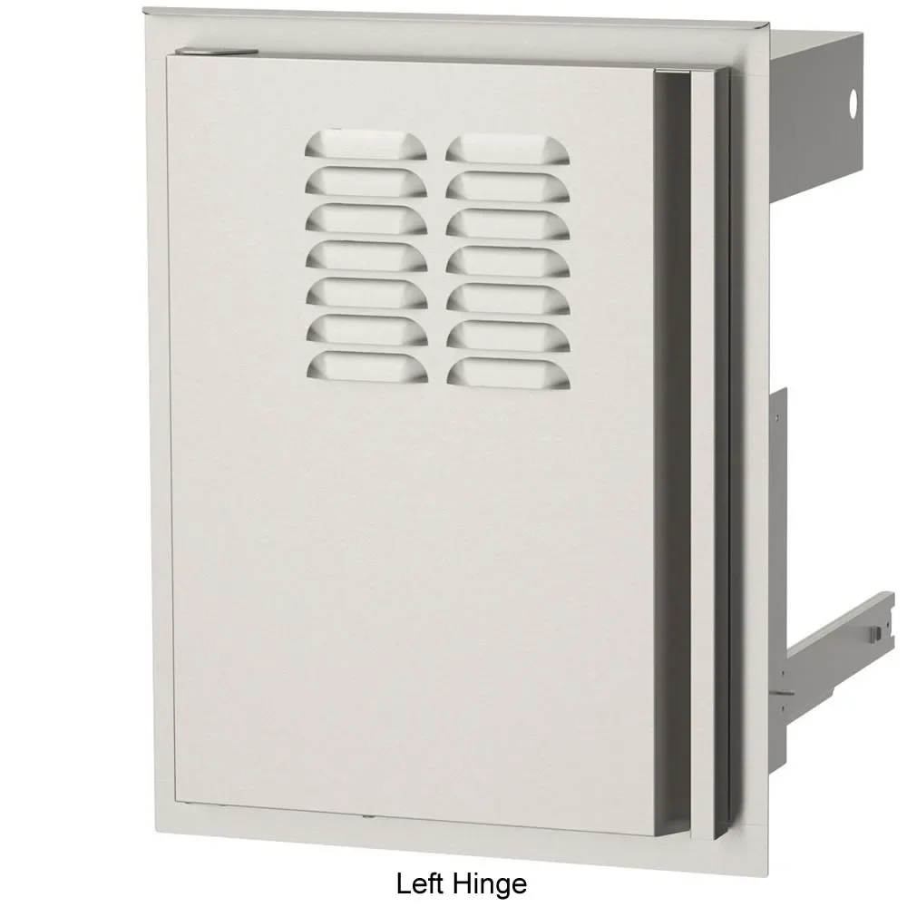 Designed to accommodate a small trash can or propane tank in your American Outdoor Grill kitchen. Built from high quality stainless steel with built-in handle and double wall construction. Provides a sliding tray that makes it easy to empty the garbage or refill your tank. The door of this unit also has louvers that are required for ventilation when using a propane tank under the outdoor kitchen counter.