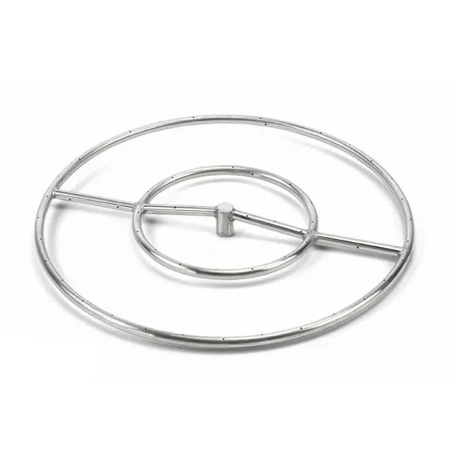 24" build your own outdoor gas fire pit with this stainless steel fire ring. Uniquely designed to keep water from collecting in the burner. All of our fire rings have staggered burner ports for a better flame pattern and a more significant flame presence with a raised center hub above concentric rings to reduce risk of water in valve or gas line. One of the best things about our fire rings is that we precision drill the holes in the burner and the competition punches their holes creating an inconsistent flame.