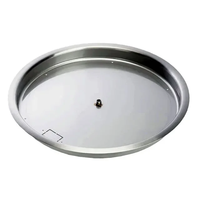 This 31" round bowl style gas fire pit burner pan is made of from 16 gauge 304 stainless steel that has a 1/2 inch stainless nipple welded in the center to connect gas supply to bottom side of pan and gas fire ring to top side of pan. Also available with a 3/4" high capacity nipple as well. All of our bowl style pans are 2-3/8" deep and have a 1-3/8" lip around the top so they can be set in a circular enclosure to support it. We also provide built-in water weep holes in the bottom for drainage. This pan is commonly used with our 24" gas fire ring.