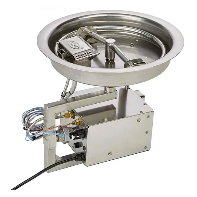 Our 13 inch compact electronic ignition gas fire pit comes completely assembled with a bowl style stainless steel pan and burner system. This allows you to built your own surround enclosure and drop this unit in. Can also be used as a torch on a pier or column.