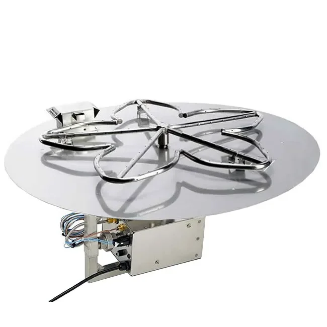 This is our largest outdoor gas fire pit insert with a 54" diameter that can be used in most residential and commercial applications. Comes fully assembled and test fired, ready to insert into a custom non-combustible enclosure or concrete surround. Operating is made simple with a remote control or hard wired wall switch that will turn the fire on and off. Available for natural or propane gas for any application. If you need help sizing your pit have any other questions contact us.