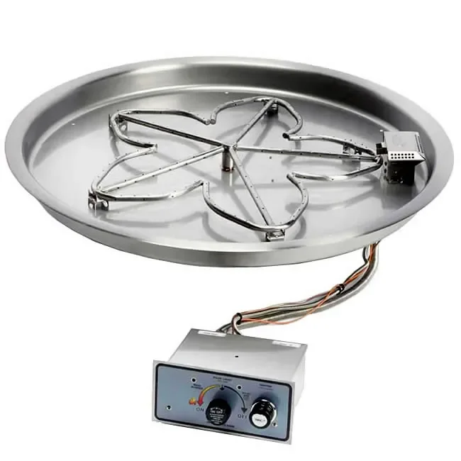 All models come completely assembled with push button battery powered flame sensing electronic ignition with a thermocouple safety valve and standing pilot. The 36" whistle free flexible gas line from the control box to the fire pit provides versatile and simple installation allowing you to place the stainless steel control valve box within the side of your custom built fire pit surround. We also offer high quality Flat Aluminum and Domed Aluminum covers to protect the fire pit from harsh weather. Need a high capacity Flexible Gas Supply Connector? We have them also.
