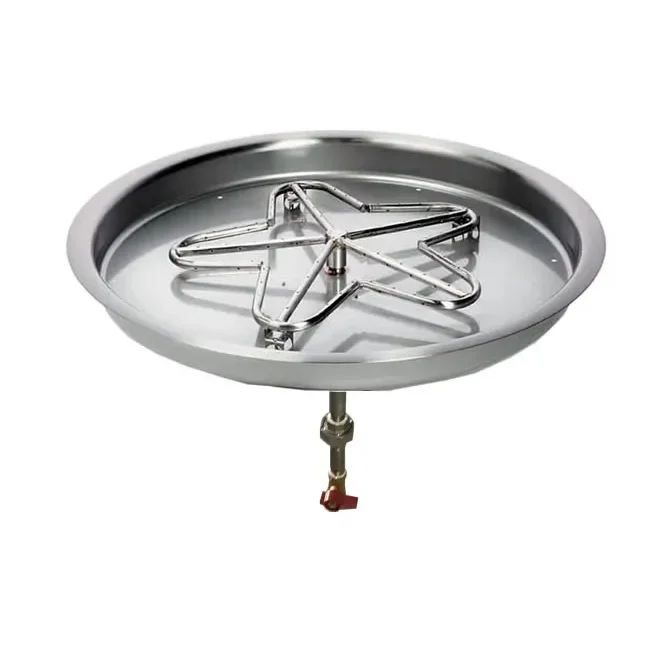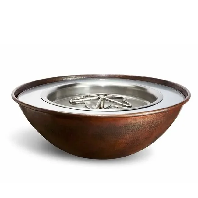 The is a manual control 31" Tempe model bowl style gas fire pit with an oil rubbed hammered copper finish surround. This fire feature comes complete with our 19" match lit gas fire pit insert and penta style burner. The Penta burner not only looks different, it burns differently with lava rock & especially appealing with glass media. It's designed to deliver a more robust campfire effect with a very tall centered flame. This is accomplished by utilizing holes drilled at the 3, 9, and 12 o'clock positions of the stainless steel tubing for a broader flame.