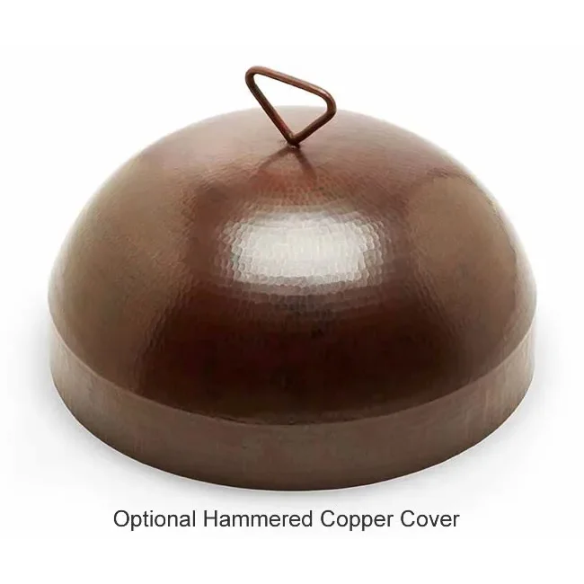 This is the electronic ignition version 32" round hammered copper Mesa style outdoor fire pit table that comes complete with our 18" electronic ignition gas fire pit insert. Choose either an on/off remote control, wired wall switch or electronic timer for convenient safe operation.