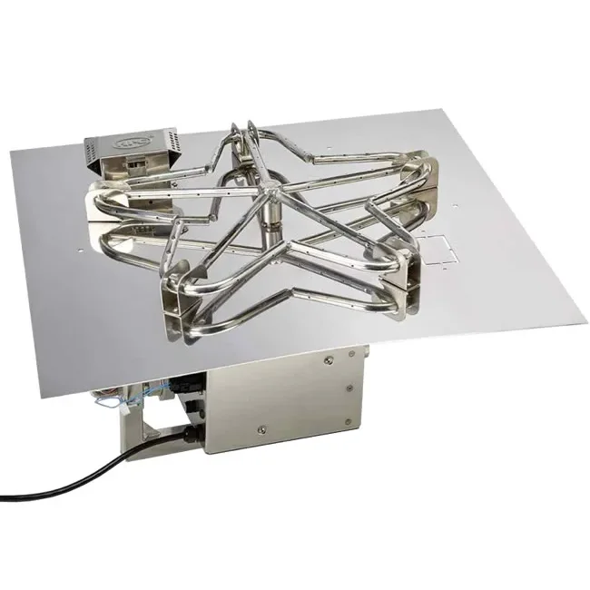 Our 36" square fire pit is the perfect size insert for any outdoor living area. Available in natural or propane gas and comes fully assembled with 250K BTU of flame power; ready to be dropped into your custom surround enclosure or existing masonry pit. All you will need is a gas line and and A/C power to bring your outdoor living space alive. If you need help sizing your pit or any other questions give us a call.