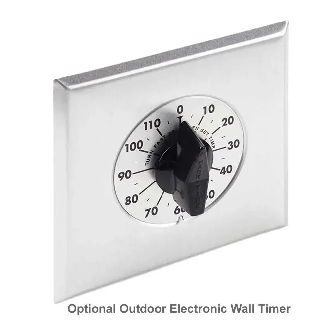 Offered with a optional standard on/off remote control or variable flame height hi/lo remote control. The on/off remote simply turns the fire on and off and the variable flame height hi/lo remote will turn the fire on/off and allow you to adjust the flame height from the remote. Variable flame height models also come with Bluetooth technology integrated into system for added convenience of smartphone fire pit control. If you do not want a remote we offer a standard wired wall switch or an outdoor electronic timer.