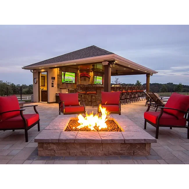 The square bowl style 30" fire pit insert will accommodate most any size outdoor area. The square bowl style pan help with media retention and comes standard with a lip around the pan to support the fire pit burner inside the surround enclosure. It comes fully assembled with 200K BTU of flame power and ready to be dropped into your custom surround enclosure or existing masonry pit. All you will need is a gas line and and A/C power to bring your outdoor living space alive. If you need help sizing your pit or any other questions give us a call.