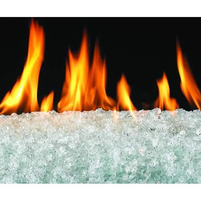 Clear fire pit decorative glass is sold in 10 pound bags and can add dramatic flare to even the most modern fireplace. All glass is tempered to withstand the heat and is available in 15 different colors to match any style or decor. May also be used in outdoor fire features.