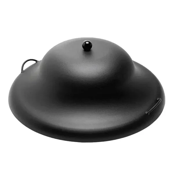This is a medium size hard aluminum fire pit cover that is powder coated with UV resistant high heat paint. The handles on the top and sides make it easy for lifting on and off. This cover can be put on fire pit as soon as the fire is extinguished. This cover fits fire pits from 25" up to 31" in diameter. Physical dimensions are 32" in diameter and 10" tall. This fire pit cover is available in textured black and gloss copper finishes.
