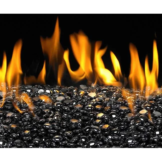 Black Pearl fire pit or fireplace decorative glass gems are sold in 10 pound bags can add dramatic flare to even the most modern fireplace. All gems is tempered to withstand the heat and is available in 15 different colors to match any style or decor. May also be used in outdoor fire features.