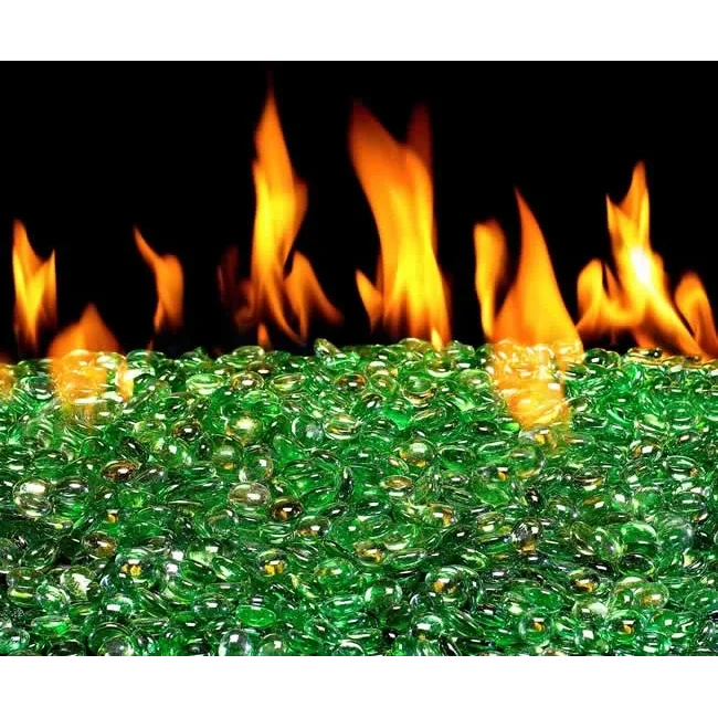Emerald colored decorative glass gems will add dramatic flare to even the most modern fireplace or outdoor gas fire pit. All gems is tempered to withstand the heat and are available in many different colors to match any style or decor. Sold in 10 pound bags.