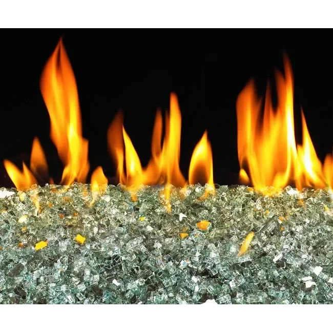 Emerald reflective fire glass can be used in gas fire pits and fireplaces that are designed to operate with decorative glass. Adding our Emerald reflective glass can add dramatic flare to even the most contemporary fireplace or fire pit. All glass is tempered to withstand the heat and is available in 15 different colors to match any style or decor. Sold in 10 pound bags.