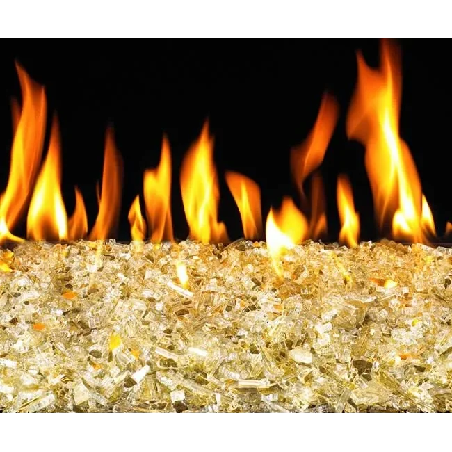 Gold Reflective fire pit glass is sold in 10 pound bags and can add dramatic flare to even the most modern fireplace. All glass is tempered to withstand the heat and is available in 15 different colors to match any style or decor. May also be used in outdoor fire features.
