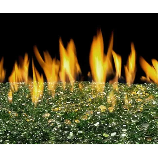 Mint color decorative fire glass gems are sold in 10 pound bags can add dramatic flare to even the most modern fireplace or outdoor gas fire pit. All gems is tempered to withstand the heat and is available in many different colors to match any style or decor.