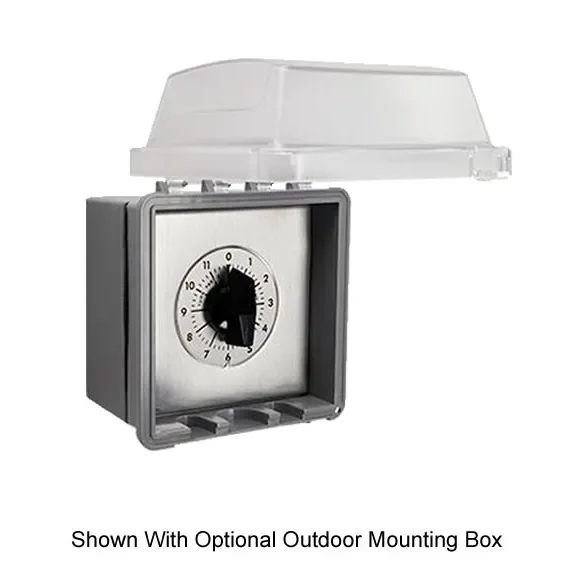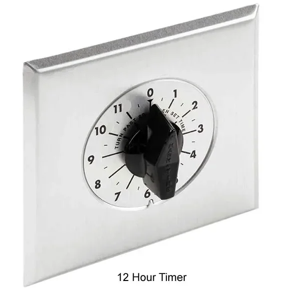 Outdoor wall timers are great for electronic ignition gas fire pits in commercial applications as well as residential. We offer 2 different models, a 2-hour and a 12-hour timer. On the 2-hour timer you will be able to set the timer dial from 1 minute up to 2 hours and on the 12-hour timer you will be able to set the timer dial from 1 minute up to 12 hours. Both model timers come with a stainless steel face and rotary timer.