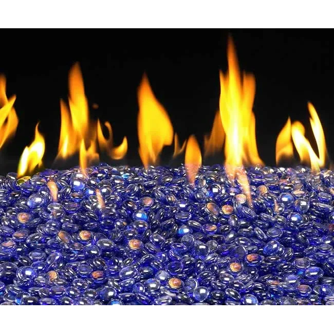 Sapphire colored glass fire pit gems is sold in 10 pound bags and can add dramatic flare to even the most modern fireplace. All glass gems is tempered to withstand the heat and is available in 15 different colors to match any style or decor. May also be used in outdoor fire features.