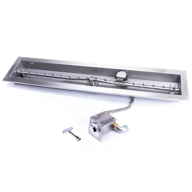 The 48 inch trough style outdoor linear gas fire pit kit comes fully assembled and is easy to install. Available for use with natural gas for propane applications. Includes 1/4 turn gas key valve, flex gas line configuration provides versatile and simple installation, 48" X 5 1/2" burner and pan with 1 1/4" lip to drop into your enclosure.