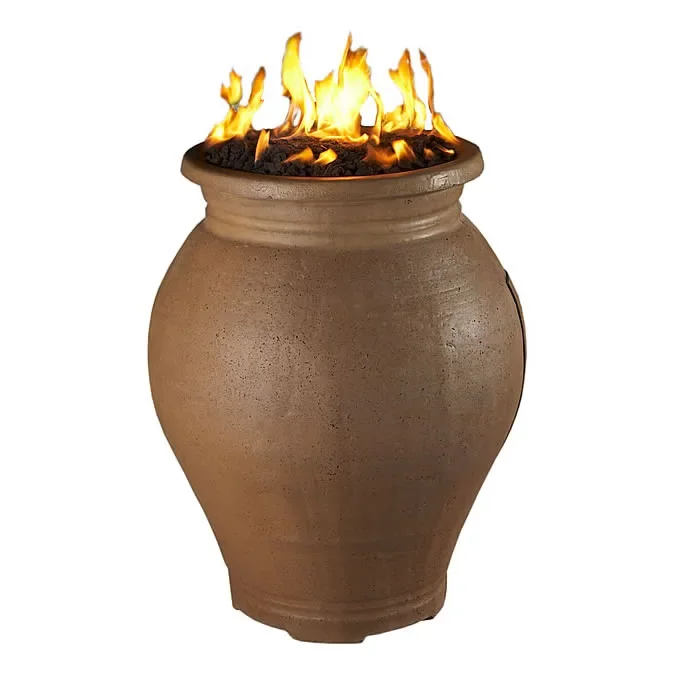 Our contemporary Amphora Fire Urn is an attractive way to dress up any outdoor living area. This fire urn comes with a removable door to house a standard size 20Lb propane tank under the urn. Several of these can be displayed down a path or placed near an entrance or other outdoor features to add sophisticated elegance to your outdoor space.