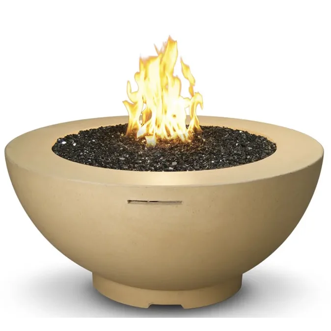 This 48" Fire Bowl with 4 color options offers a simple, contemporary design and versatility for any outdoor area. Handcrafted from glass fiber reinforced concrete with a riser at the bottom to elevate slightly off the ground. The 48" Fire Bowl is the largest size we currently offer with 5" wide lip around the top of the bowl and can house a propane tank under the bowl, accessible via a removable side door. Available in match lit ignition where you would turn the gas on and light the fire with a match or lighter or electronic ignition that would light the fire from the included remote control. The electronic ignition model includes hot surface ignition, on/ off remote control and was developed to operate in harsh weather conditions.