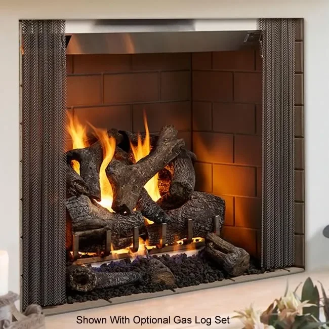 The Castlewood wood burning outdoor fireplace will make a statement in any outdoor setting with it's impressive 42" wide X 38" high viewing area. Shown above with traditional brick interior and also offered in a herringbone brick interior as well (see options below). The Castlewood fireplace can also be used with outdoor gas logs if desired by removing the knockout on either side of the fireplace for a gas line.