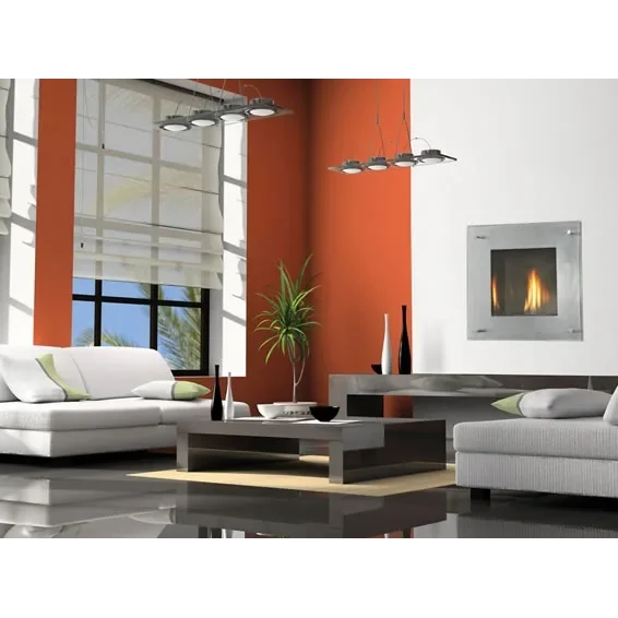 The Soho redefines the gas fireplace. Its compact square shape and shallow design is perfect for modern interiors. The portrait installation with Studio front mimics a work of art and allows for installation anywhere in a room or home. It's time to change the way you think about fireplaces where they should go and what they should look like. Because now there's Soho. It's not like other fireplaces. Its small, square shape and shallow depth make creative installation opportunities huge. Now what you can do with a fireplace is limited only by your imagination. Soho, The smallest and shallowest firebox ever offered by Heat & Glo, coupled with low heat output, lets you install Soho in places you never thought possible. Sleek modern Soho replaces traditional bricks and logs with a reflective firebox interior and black onyx pebbles. Install it on a wall, just like a piece of modern art framed in a Studio front.
