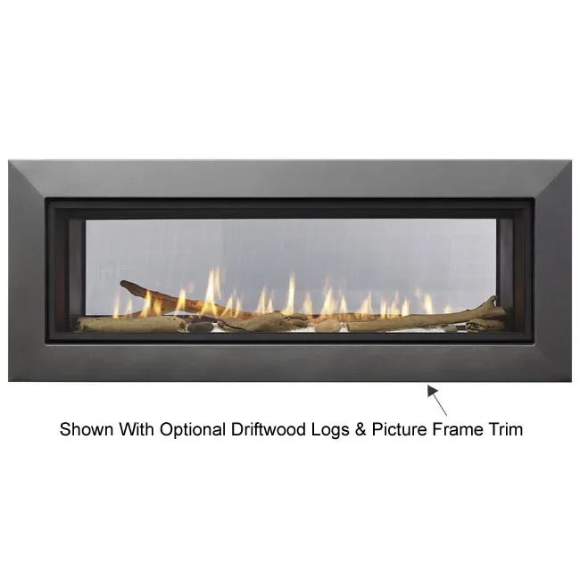 To complete that fireplace you must select a decorative trim front offered in a narrow clean face trim available in black, new bronze & gun metal finishes as well as a picture frame trim kit with charcoal finish. The price includes 2 trim kits, one for each side. We also offers an optional driftwood log set you can turn the fireplace into a less contemporary unit and still keep a present-day decor.