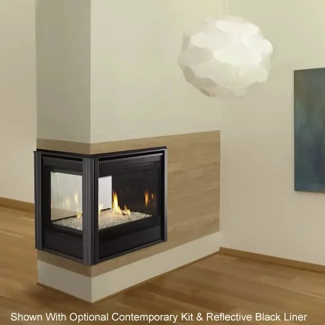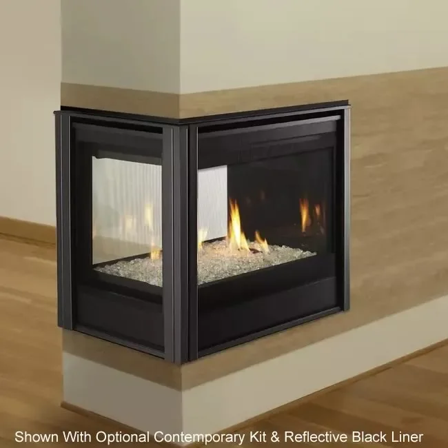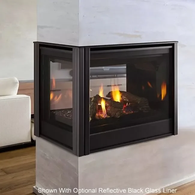 The Peninsula Pier Designer direct-vent fireplace offers a large viewing area and clean face design, you'll enjoy the warmth and comfort of your fireplace from three sides. Customize the look with one of the three interior liner options of your choice.