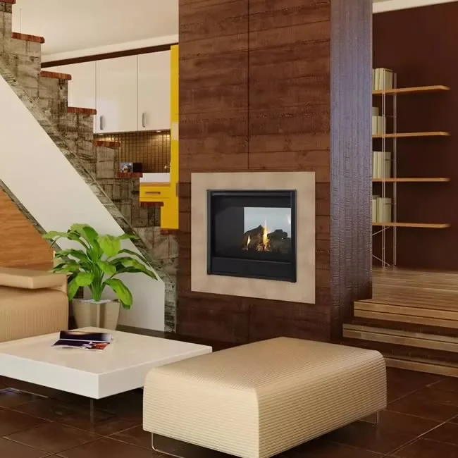 Connect two separate rooms with a single fireplace! Enjoy the sophisticated style of the see-thru direct vent gas fireplace by Majestic and admire the dancing flames through the extra large, clean face design.
