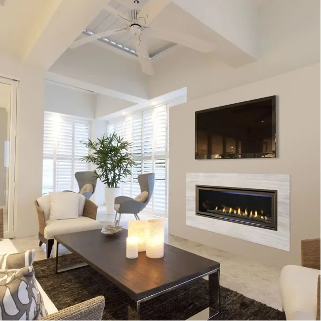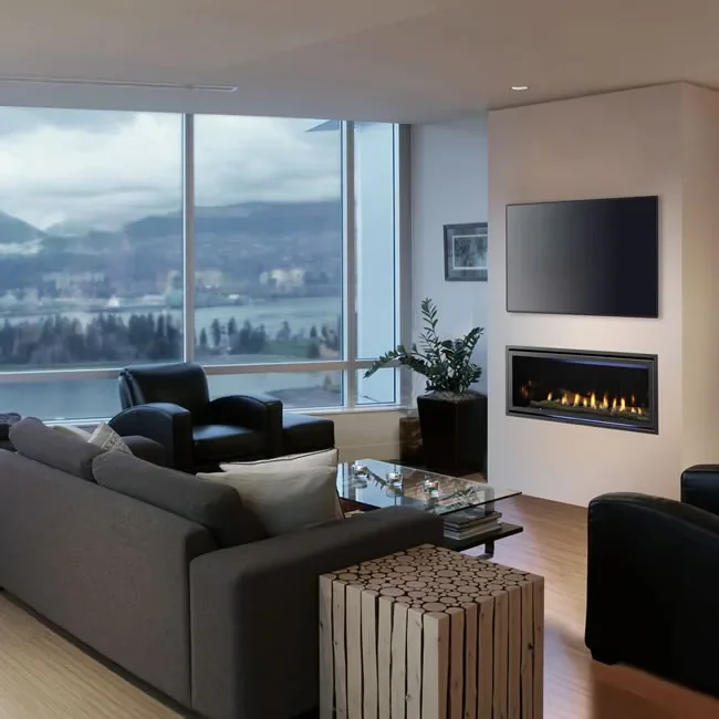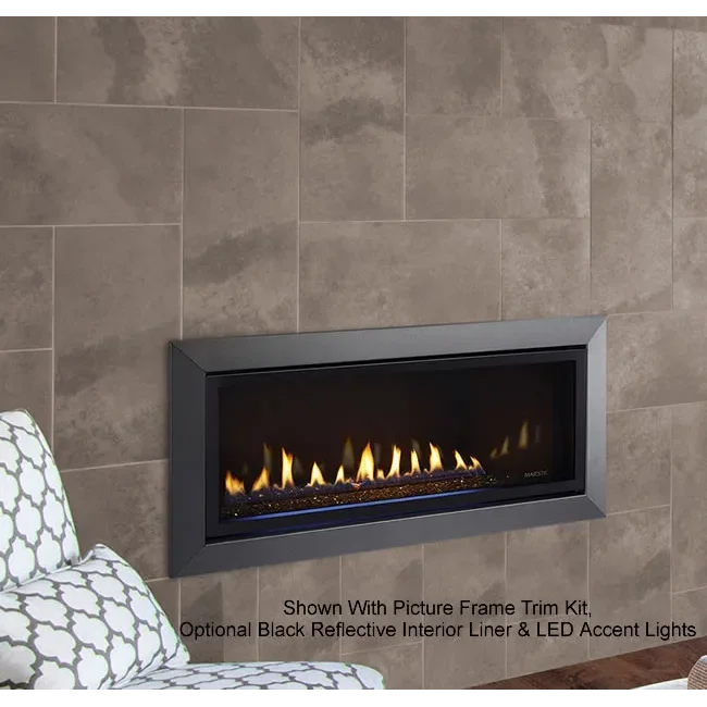 The Jade 42" Direct Vent fireplace by Majestic has a sleek linear style. The user friendly design and reliability of this fireplace makes it very popular along with the reasonable price. An optional SmartWall TV kit allows placement of a TV 12" above the fireplace with no mantel required allowing it to be more adaptable to your space. Includes IntelliFire Touch ignition system, bronze glass media, and tempered glass front. Easily changeable interior designs makes it simple to fit your style, whether it be traditional or contemporary.