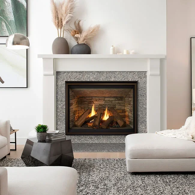 The Meridian Platinum 36" fireplace comes with a clean face design and feature a full-size 34-1/4" wide X 24-3/4" high viewing area and comes standard with 6 ceramic fiber logs and glowing embers. Also standard is the IntelliFire Plus electronic ignition system that allows lighting the fireplace with a flip of a switch or remote control. Controlling your fireplace has never been easier! Includes RC400 multi-function touchscreen remote with thermostat control, variable flame height, timer, lights and fan speed control.