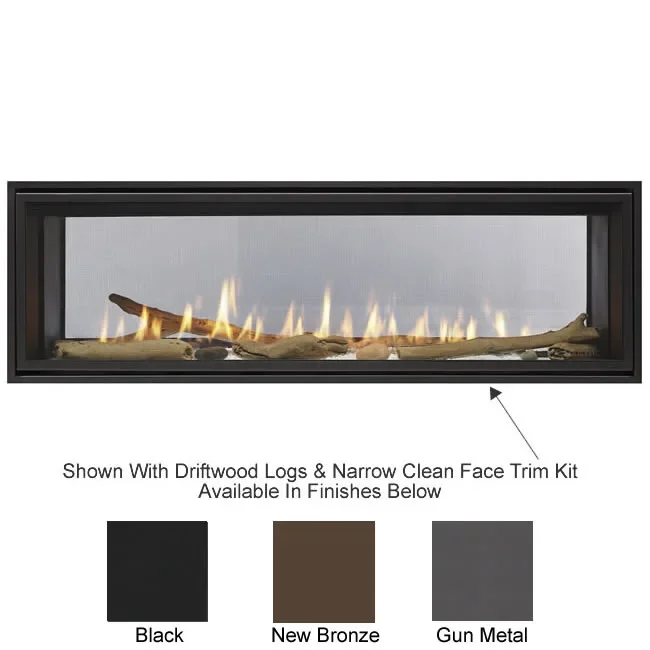We also offers an optional driftwood log set you can turn the fireplace into a less contemporary unit and still keep a present-day decor. To complete that fireplace you must select a decorative trim front offered in a narrow clean face trim available in black, new bronze & gun metal finishes as well as a picture frame trim kit with black finish. The trim price includes 2 trim kits, one for each side