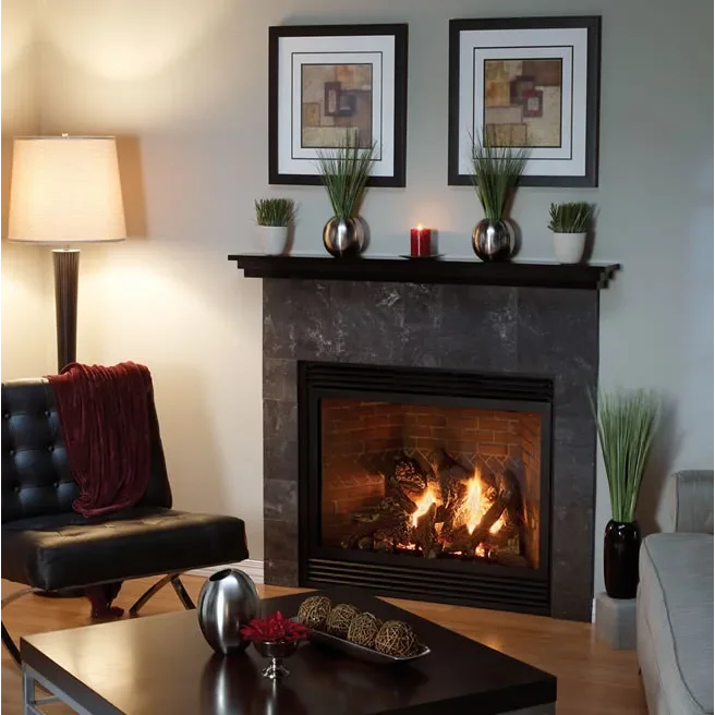 Tahoe Luxury models feature ceramic glass (for better heat transfer), dimmer-controlled accent lamps inside the fireplace, a choice of unique brick liners (shown below), automatic blower and an intricately detailed 13-piece log set atop the all-new extended Slope Glaze Burner for a fuller ember bed. And with its larger flame, the Luxury fireplaces produce more heat. Including a thermostat remote control that automatically varies flame height and blower speed to maintain your pre-set temperature.
