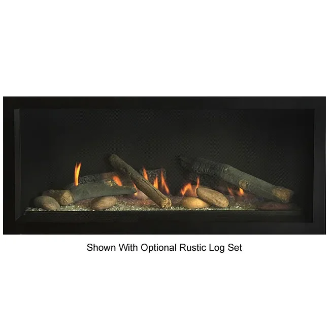The new 36" White Mountain Hearth Boulevard direct vent linear fireplace offers several options including crushed glass media and optional decorative glass droplets. The fireplace comes standard with a matte black interior liner and we also offer an optional black reflective porcelain interior liner or the modern Ridgeback bronze liner. Decorative trim options are also available in matte black or hammered pewter finish that will hide granite or tile's cut edges, and adjusts from 3/8" to 1-1/2" in thickness to accommodate for most surround materials. We also offer decorative Forged Iron and Beveled Frames shown below. The optional Rustic Log Set includes a unique assortment of ceramic fiber logs and stones, plus coiled slivers of stainless steel that react to the light and flames to bring your fireplace to life. If you have questions please contact us.