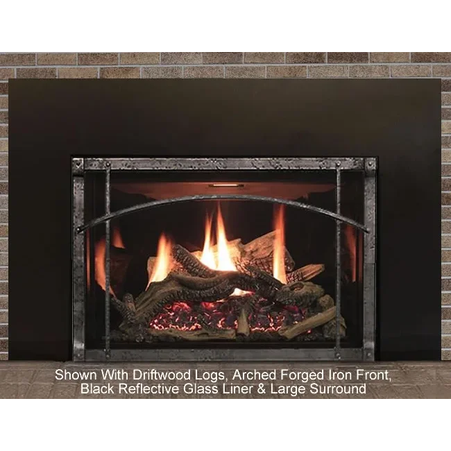 A wood-burning fireplace sends more than half of its heat up the flue, creating negative pressure in your home that draws in outside air through gaps in doors and windows and actually makes a home colder. The Rushmore direct-vent insert system uses flexible co-linear vent pipes. One draws air from outside your home, and the other sends flue products directly outdoors. The flexible metal venting allows the insert to install easily in a site-built or manufactured fireplace.