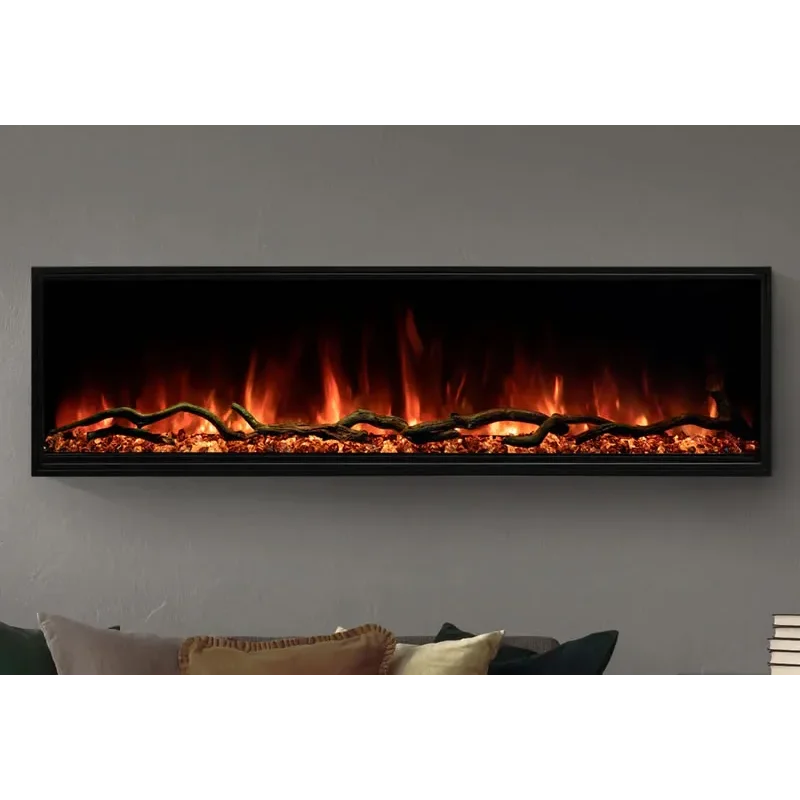 Modern Flames landscape pro slim 68 inch linear electric fireplace can be fully recessed into a 2 x 6 wall for a modern clean-face look and can be installed in most any room. This Landscape Pro series features independently controlled flames plus up & down lighting with an edge-to-edge viewing area. The realistic LED flame appearance is unrivaled by the competition as well as the modern controls this fireplace is equipped with.