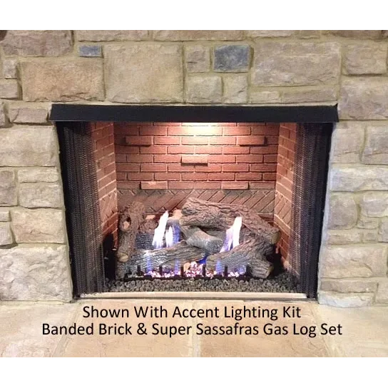 Optional accent lighting is available for all select models and can be installed with a dimmer switch to set the light output. We also offer an optional outer frame trim kit that are typically used when installing firebox into a wooden cabinet style mantel or flush with sheet-rock wall (not needed if surrounding fireplace with rock, granite or any other none combustible material. Any of our 30" vent free gas log sets can be used in this fireplace.
