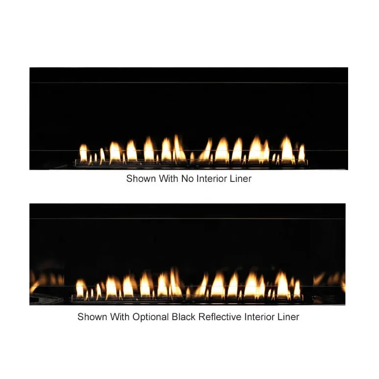 An interior liner is not required but can be added as a decorative option. The fireplace comes standard with a flat black interior liner but you can add one of our unique ceramic glass black reflective liner to create the illusion of unimaginable depth or opt for the brushed stainless steel liner for a brighter contemporary feel.