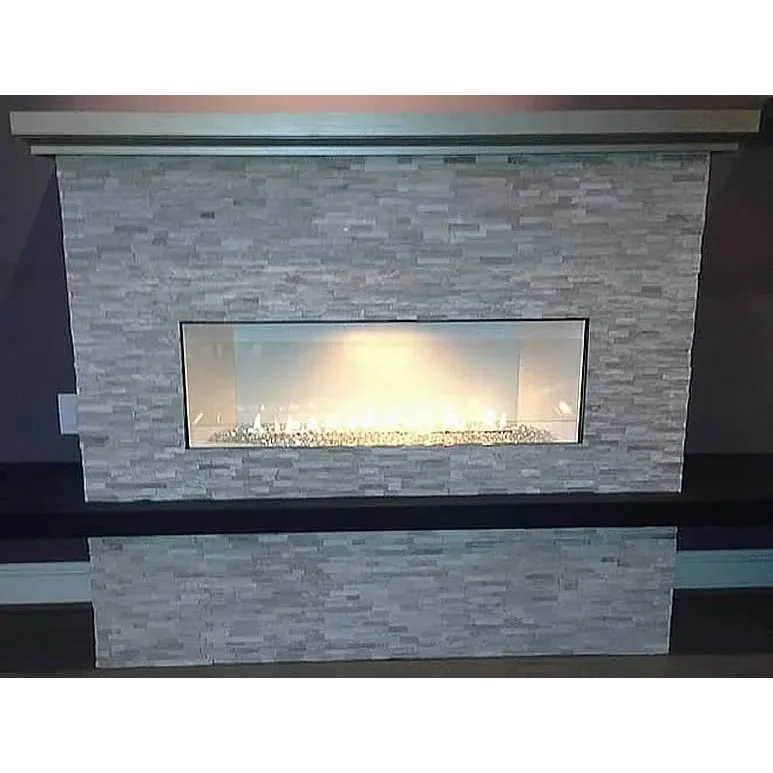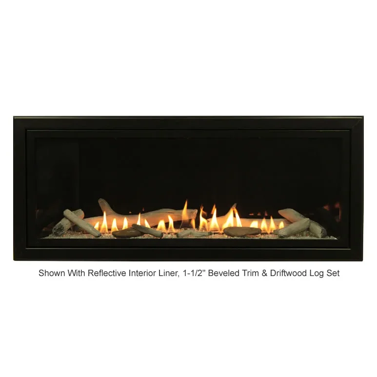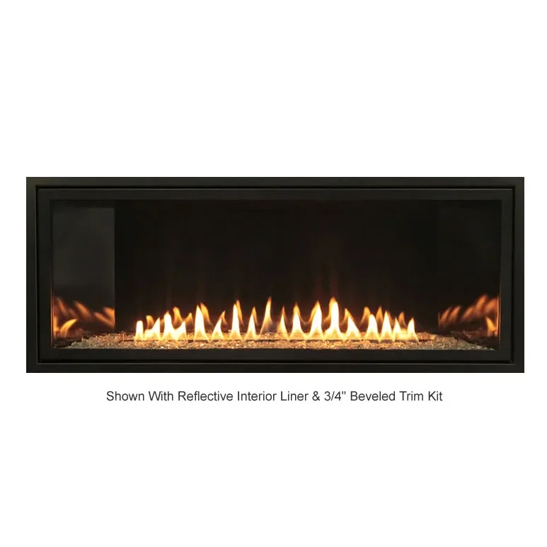 This is the Boulevard series vent free linear fireplace system by White Mountain Hearth. Offering a sleek contemporary design with options such as interior liners, decorative front trim kits, accent lighting and glass media for inside the fireplace. Choose from two different control types; electronic ignition with a battery backup that will electronically light the pilot light, vary the flame height up and down, act as a thermostat control and turn the fireplace on and off or remote ready millivolt system with a standing pilot and standard on/off remote control. See other options below.