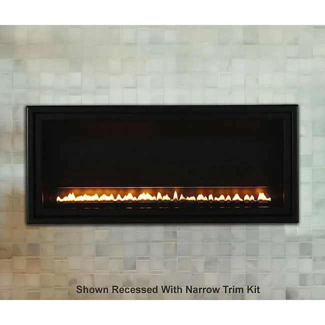 At just 5-1/2" inches deep the Boulevard SL is the first vent-free fireplace that can install fully in a 2X6 stud-framed wall. Add tile right up to the rectangular opening to create a stunningly beautiful, amazingly efficient clean-face fireplace. The optional narrow trim kit finishes the opening and adjusts for different depths of tile or stone. Recessed installation requires installing the included noncombustible material above and to the sides of the fireplace and tile or stone to the fireplace opening. The optional narrow trim kit hides tile edges, and adjusts from 1/2 to 1 inch.