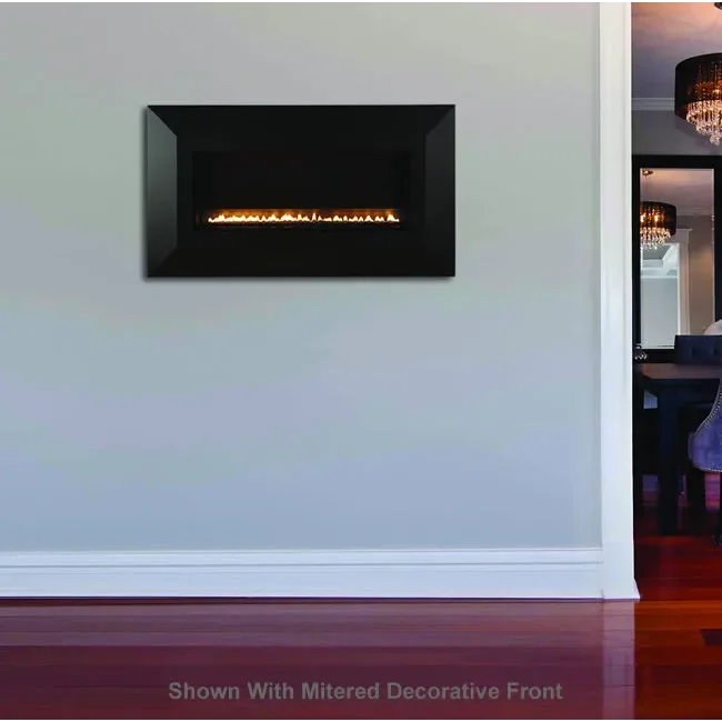 The Boulevard SL can be hung like framed art on any wall – including brick, stone, or conventional drywall – and finished with a decorative front. Surface-Mount installation requires a Mitered Decorative Front and a Fireplace Wrap.