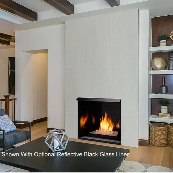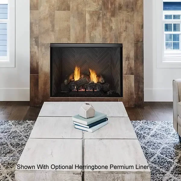 The 42" Lo-Rider vent-free firebox by Monessen is the largest in the lineup and features a clean face full view opening with no louvers at the top or bottom. This box is good for flush or raised hearths and the face of the fireplace can be covered with a non-combustible material such as brick, rock or granite to give it a real built-in look.