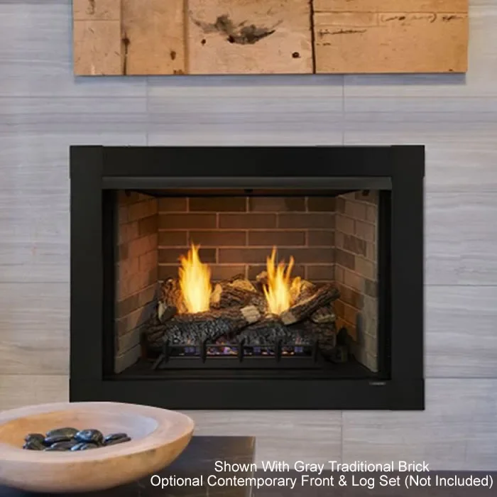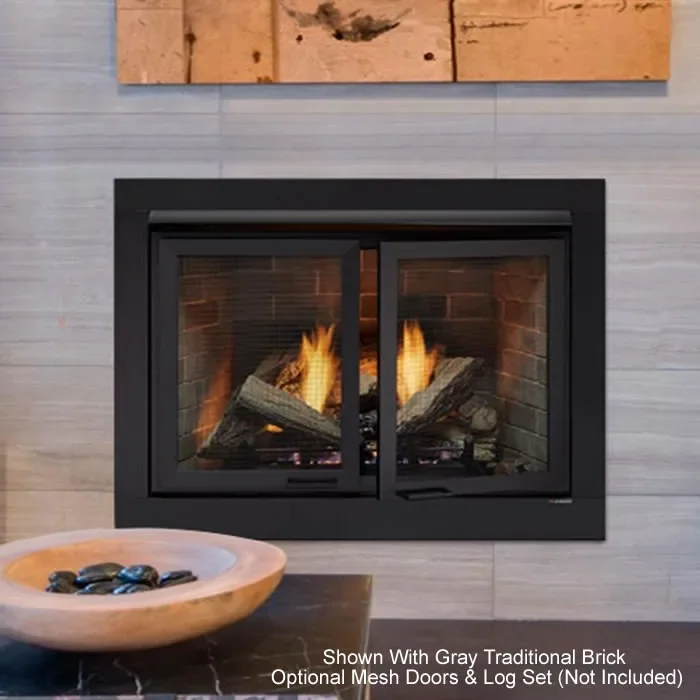 The Attribute 42" vent-free firebox by Monessen comes standard with reversible interior brick panels, one side has a herringbone brick pattern and the other has a traditional stacked brick pattern. Available in two different colors, Multitonal Gray and Brown. We also offer an optional reflective black glass for a more contemporary look.