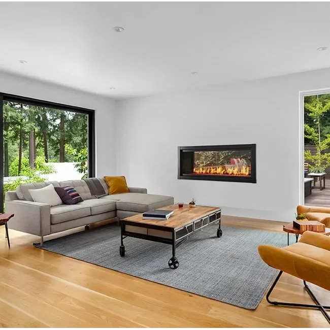 The Artisan see-thru fireplace by Monessen can be installed as traditional see-through on an interior wall or on an exterior wall for an indoor/outdoor fireplace. We also offer an inside fit trim kit to conceal unfinished edges created by some facing materials around the opening of the fireplace as well as decorative media for inside the fireplace. You will have no problems creating the perfect decor for your indoor and outdoor living area. Also available in a single sided model.