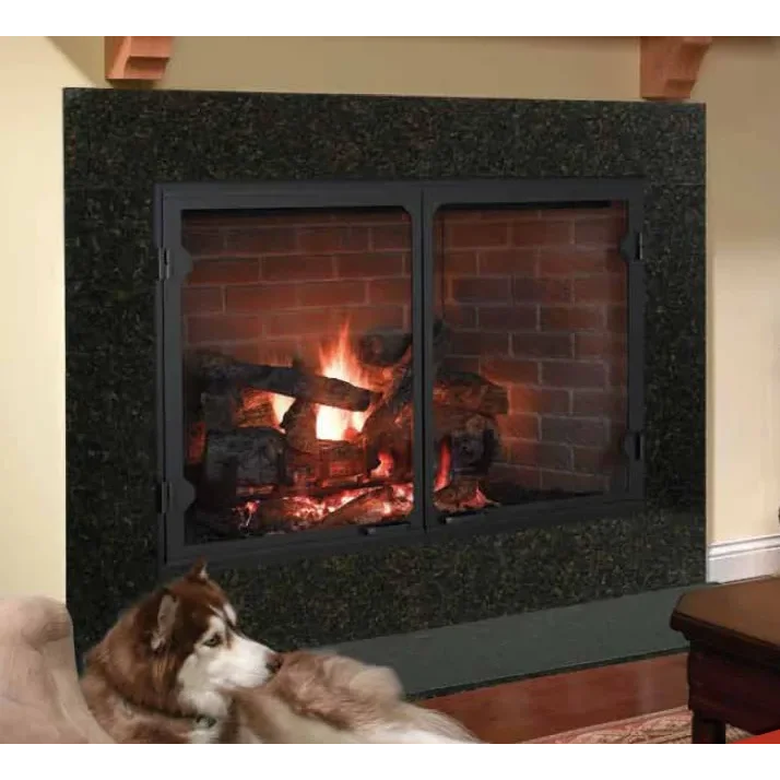 The Heatilator Icon I100 is the Industry's largest wood burning fireplace with a full 50" wide by 33" tall opening. It's clean face design allows finishing materials to be applied right up to the edge of the firebox opening so there is no visible black steel. The distinctive refractory lining color and texture deliver the most convincing masonry look available in a factory-built fireplace today. Refractory patterns available are traditional brick and new herringbone. DM style doors in 3 finishes,special Anniversary Edition premium full-framed door in vintage iron, and a mission-style red oak surround are all available as options. Heatilator 20-year Buyer Protection Plan.