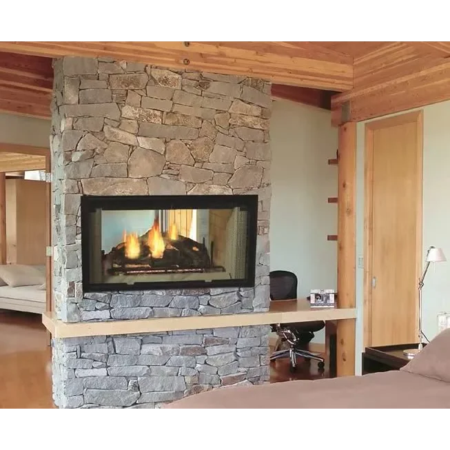 Our 42" Majestic designer series see-through wood burning radiant fireplace has extra large 42" Wide x 24" high viewing area. Add optional bi-fold glass door with black trim to one side or both sides.