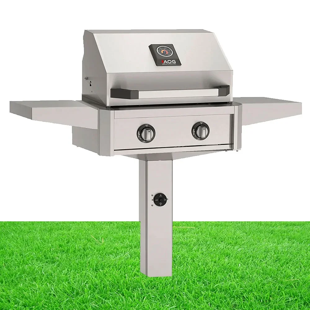 If you're interested in purchasing a top of the line in-ground gas grill to become a permanent fixture on your deck or patio, American Outdoor Grill has a perfect line or gas grills and barbecues for you! All AOG products are capable of using natural gas or liquid propane and are constructed of commercial-grade stainless steel for ultimate durability. With an oversized 24 inch cooking surface, this is an in-ground gas grill with room to cook the entire meal, not just a few hotdogs or hamburgers at a time.