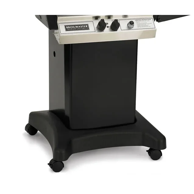 The DCB-1 black painted steel portable cart fits all Broilmaster grills listed below. It also features a black steel column with a composite base with removable casters.