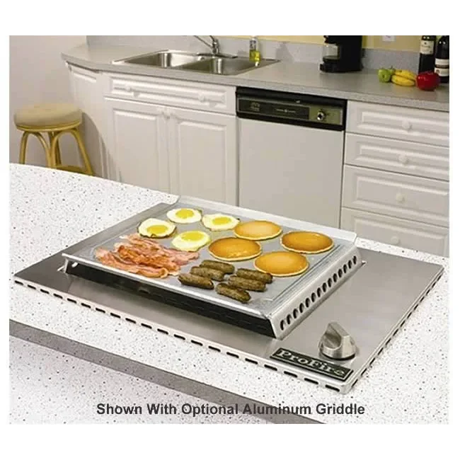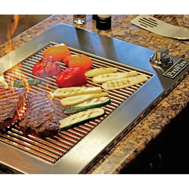 Bringing that great outdoor flavor indoors is a snap with our indoor grill. ProFire has perfected the art of grilling with this high quality stainless steel barbecue grill. The ProFire model PFINDOOR indoor grill features infrared cooking with a high tech ignition system that includes a built-in safety shut-off. Removable dishwasher safe stainless steel interior panel makes clean up easy. Whether it's steaks, ribs, roasts, chops, chicken or burgers, capture that outdoor flavor your family loves with the ProFire indoor grill. The optional griddle attachment is perfect for cooking eggs, bacon or pancakes - just the thing to jump-start those ideal weekend morning family gatherings.