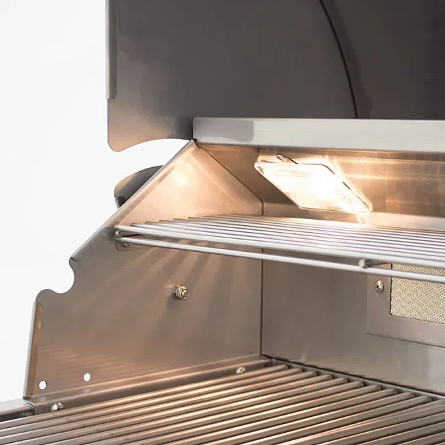 The Blaze 4-burner LTE+ Series 32" built-in grill comes standard with built-in interior lights and illuminated control knobs for grilling at night. The over all appearance is very desirable as with most stainless grills but the Blaze packs a punch with their solid construction under the hood with 4 commercial quality 304 cast stainless steel burners and heavy duty 9mm stainless steel rod cooking grids. This grill compares to some of the top end brands at less the half the price.