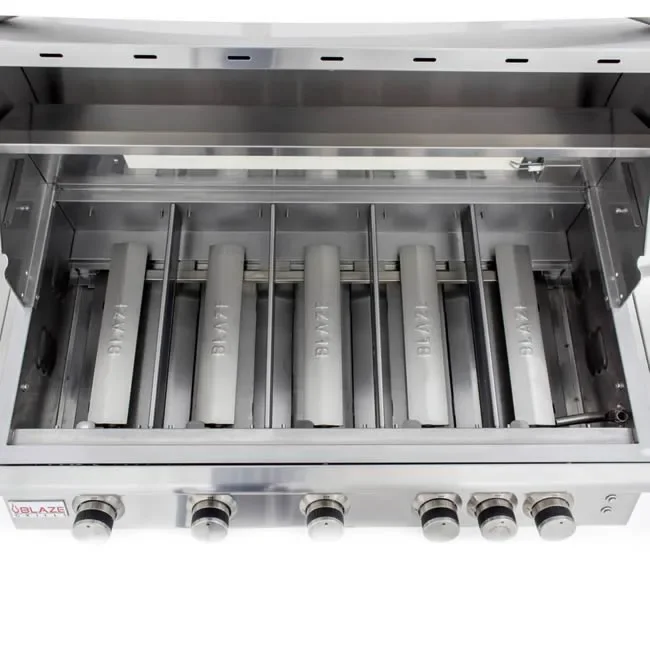 The 40" Blaze LTE+ Series freestanding grill is equipped with illuminated control knobs and built-in interior lights for grilling at night. The over all appearance is very desirable as with most stainless grills but the Blaze packs a punch with their solid construction under the hood with 4 commercial quality 304 cast stainless steel burners and heavy duty 9mm stainless steel rod cooking grids. This grill compares to some of the top end brands at less the half the price.